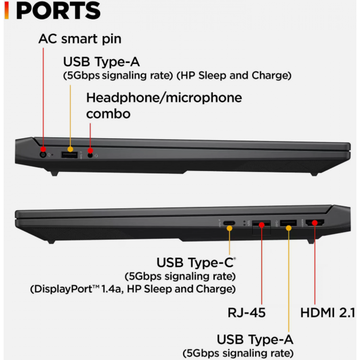 • 1 USB Type-A 5Gbps signaling rate (HP Sleep and Charge)(64)